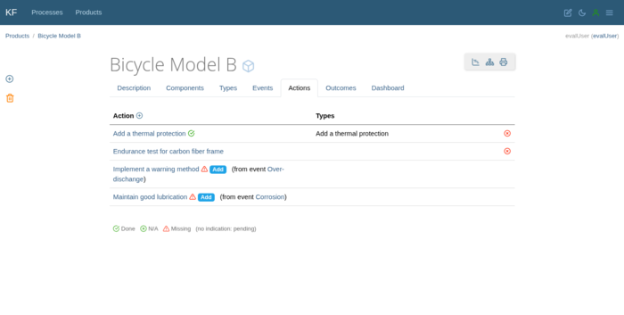 If something goes wrong, you can record it as an event. You can also link it to its possible causes and effects — creating what’s called a fault tree. KF helps you build and view these trees visually.
